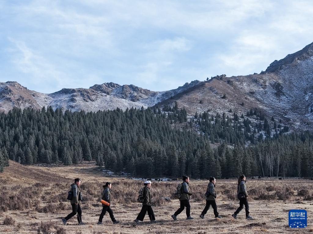 3月6日,祁连山国家公园(候选点)青海区青羊沟保护管理局的一名女护林员在祁连山巡逻(无人机照片)。初春,在祁连山的茫茫森林深处,一支女巡逻队冒着寒风,翻山越岭开展巡查活动。祁连山国家公园青海区青羊沟管理站(候选地点)位于青海省海北藏族自治州祁连县阿楼乡,平均海拔3100米以上。目前管理中心有生态公园护林员54人。它们常年栖息在祁连山深处。他们负责监测森林生长、控制害虫、进行火灾危险研究以及保护和拯救该地区的野生动物等任务。他们全心全意地保护着脚下的大地。祁连山是我国西部重要的生态安全屏障,是雪豹、白尾鹿、黑尾鹤等珍稀野生动物的重要栖息地。图片提供:新华社记者张龙。